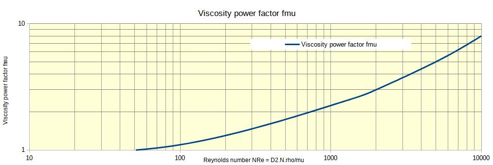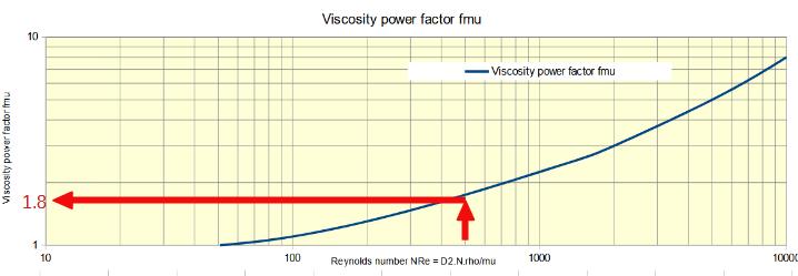 The Reynolds number allows to calculate a viscosity power factor by using the graph below :