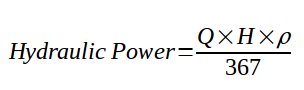 The hydraulic power is calculated thanks to : Q*ρ*H/367